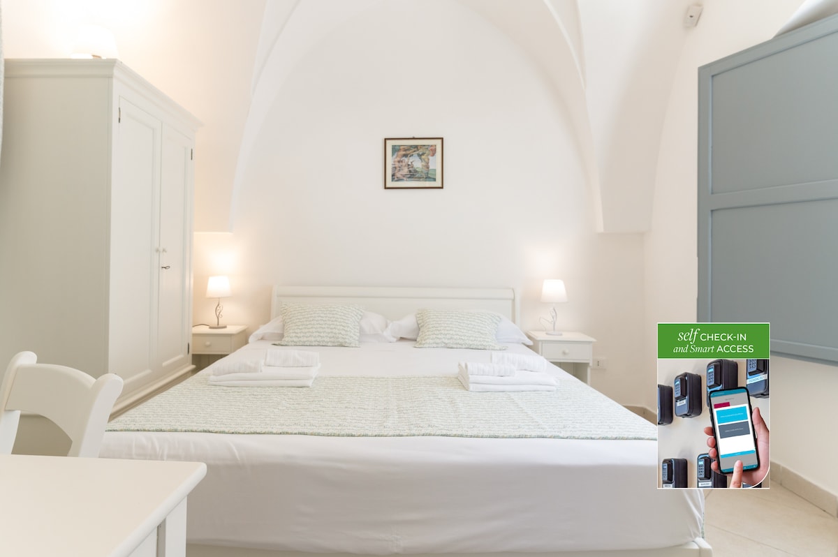 Questa camera racchiude al suo interno un gioiello di relax, un rifugio perfetto per una coppia che cerca un soggiorno sereno e rilassante. L'arredamento è un omaggio alla bellezza naturale della Puglia, con tonalità morbide e tocchi di raffinatezza che creano un'atmosfera accogliente.All'interno, troverai un angolo relax dove potrai ritagliarti del tempo solo per te. Al centro della stanza, il letto king size troneggia maestoso, pronto ad accogliere il tuo riposo dopo una lunga giornata.