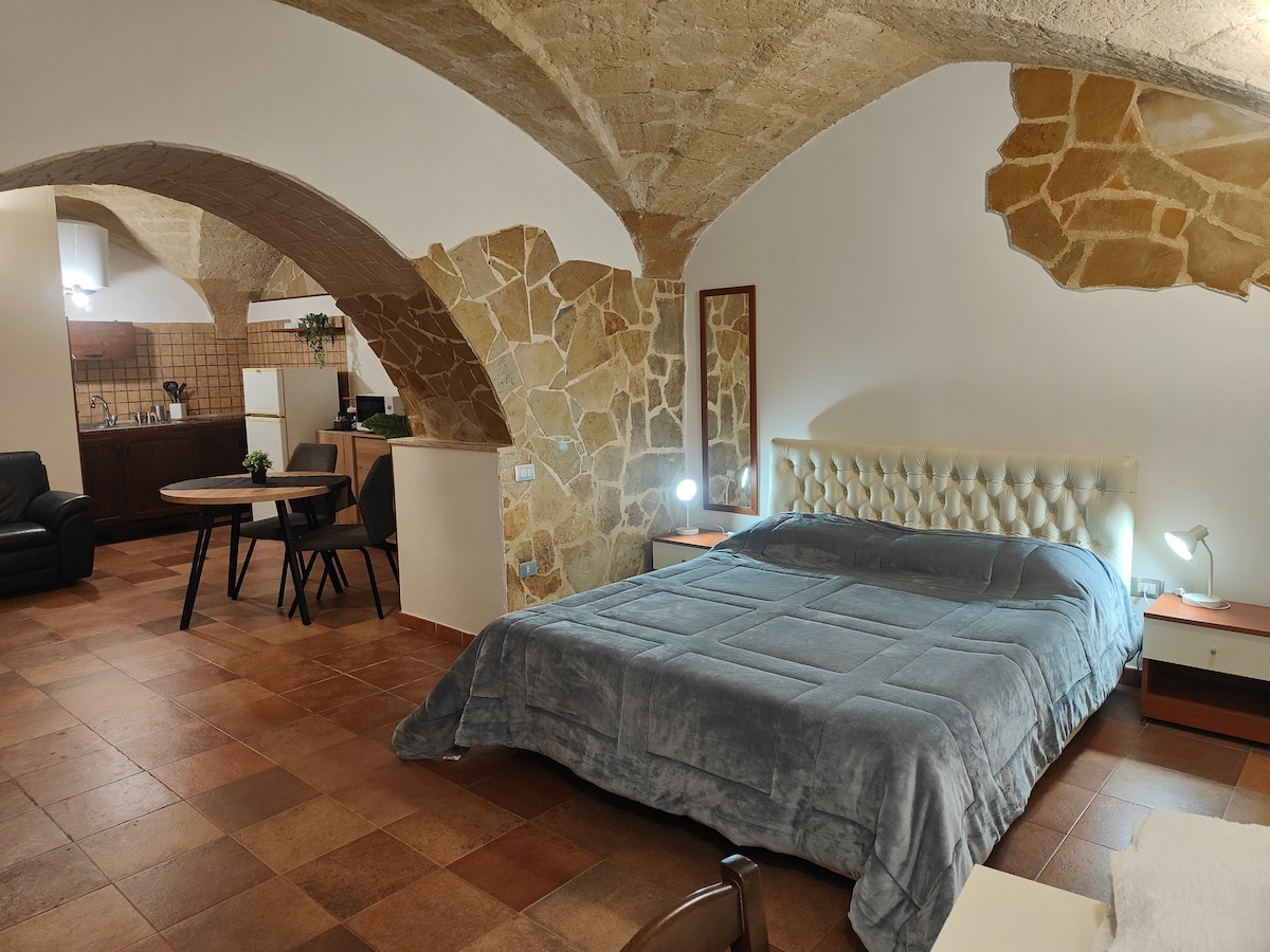 Fascinating and caracteristic apartment, Suite N. 8 is located in a green and safe area with all facilities, at 500 m. from the main Square. Suitable for one couple or family with two children above 5 years (presence of stairs). The Mini has been recently renovated with high quality finishes and high level of confort: large shower with chromotherapy, double TV and SkyTV, Air Cond., washing machine and elegant fornitures. A relaxing atmosphere, with a romantic alcova and a very wide terrace.