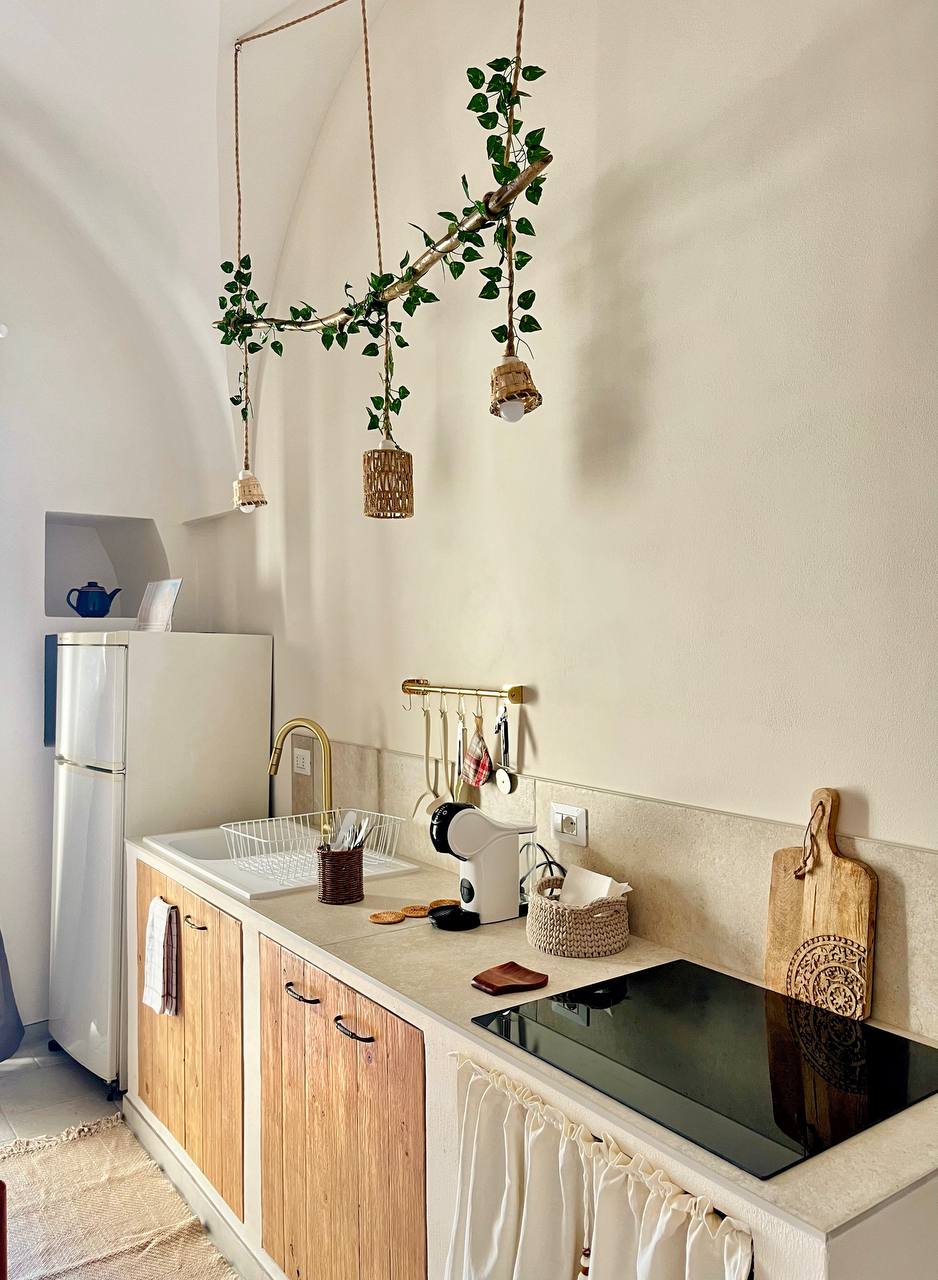 CIS: BR07401291000000188 CIN: IT074012B400033730 Vivi la magica sensazione di trovarti tra passato e presente: è una dimora storica! I pavimenti d'epoca e le pareti in pietra fanno da sfondo a un ambiente arredato con oggetti di design, vecchie ceramiche e mobili locali. L'ampio terrazzo privato, con solarium e doccia calda, saprà entusiasmarti: potrai rilassarti con un bicchiere di vino al tramonto, godere del sole su comodi lettini o preparare una cena in una magica atmosfera pugliese.