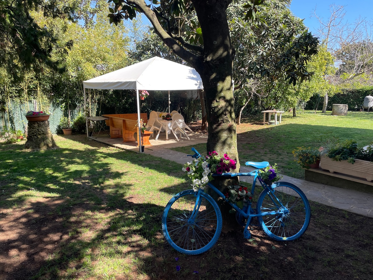 2km from the wild beach of Sabaudia and the Circeo National Park. Independent 50sqm house in a villa, with private garden, gazebo for outdoor dining and barbecue area. Double bed, sofa bed, fully equipped kitchen, fiber wifi, free parking. Ideal for couples and families up to 4 guests, pets welcome. The perfect spot for those looking for nature, sea, and the quiet that only the Pontine countryside can offer.
