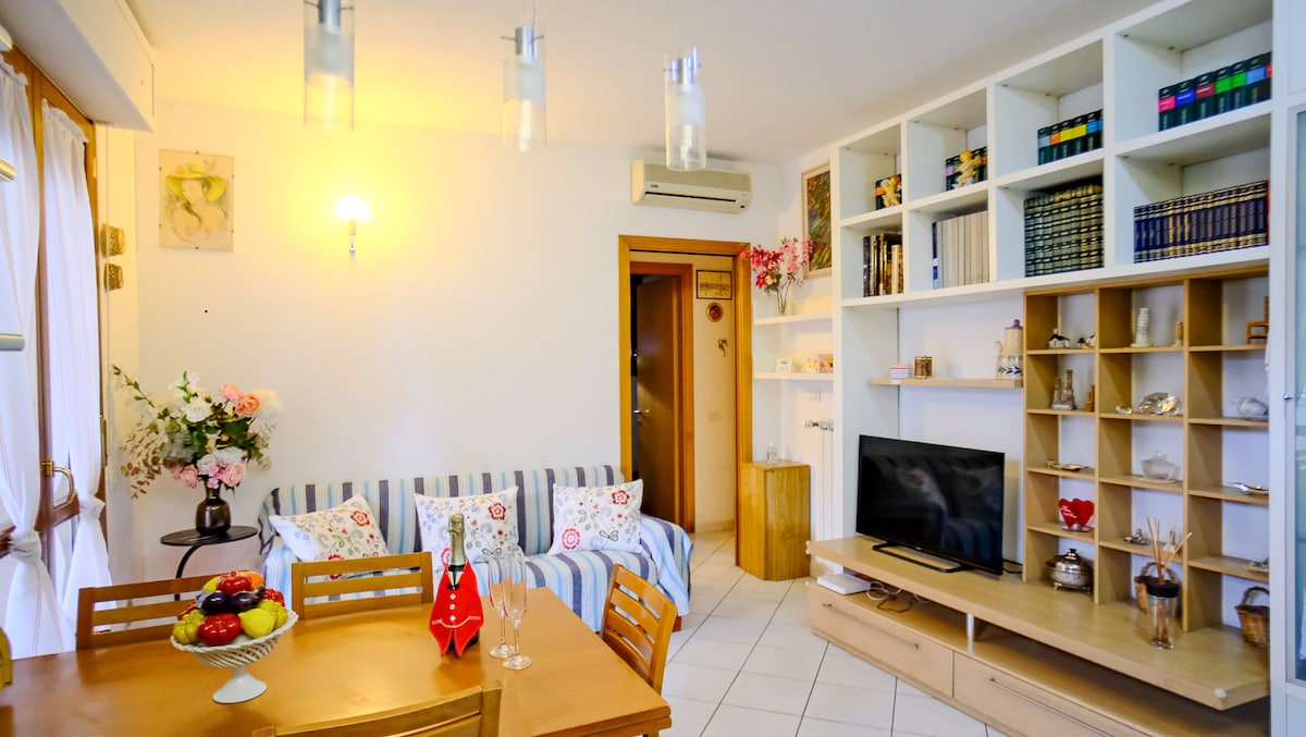 Stan 3 Vani koji se nalazi na 1. spratu je fino opremljen modernim dizajnerskim namještajem, opremljen posteljinom, peškirima . Područje okruženo zelenim, veoma tiho i tiho, u blizini različitih javnih vrtova sa igrama za djecu u blizini. ID-ovi će biti potrebni po dolasku u skladu sa italijanskim propisima