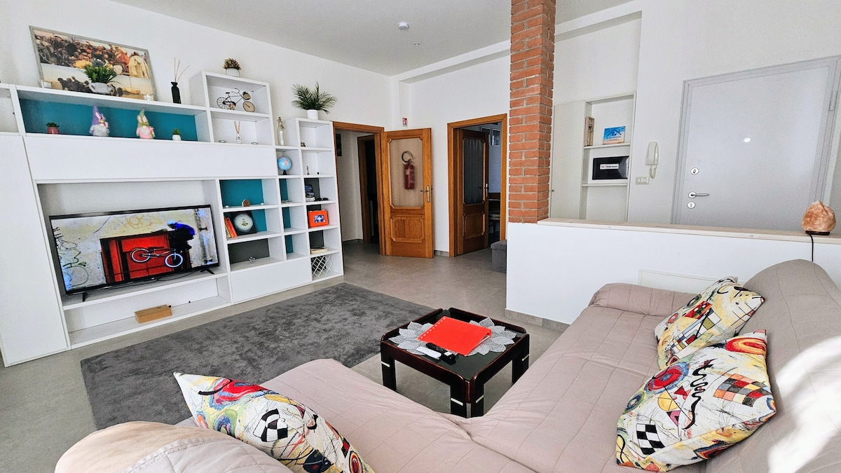 Extraordinary 100 sqm loft in the heart of Omegna, in a prime location just steps from Lake Orta and close to the train station and bus stops. Tastefully furnished and equipped with all comforts: fully equipped kitchen, Smart TV with Netflix, Wi-Fi, courtesy kit, and towels. Among its strengths is a spacious private terrace, perfect for relaxing moments, complete with sun loungers, a table, and chairs. A cozy fireplace in the living room creates the perfect atmosphere for cold winter days.