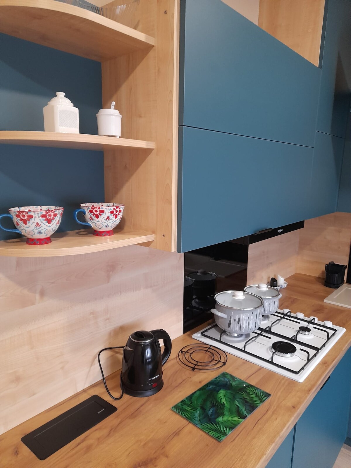 Savršeno mesto za porodicu ili romantični odmor. Dve spavaće sobe, prostrano kupatilo i prostrana dnevna soba sa čajnom kuhinjom i terasom od 40 m2 zadovoljiće svakoga ko ceni prostor i udobnost. Stan je kompletno opremljen, uključujući mašinu za sudove, rernu, mašinu za pranje veša, električnu mašinu za sušenje veša, peglu i internet. Gosti imaju pristup besplatnom parking mestu. U ovom području ima mnogo atrakcija, kao što su marina Krapkovićka, unutrašnji bazen za delfine i dvorac Mosznia.