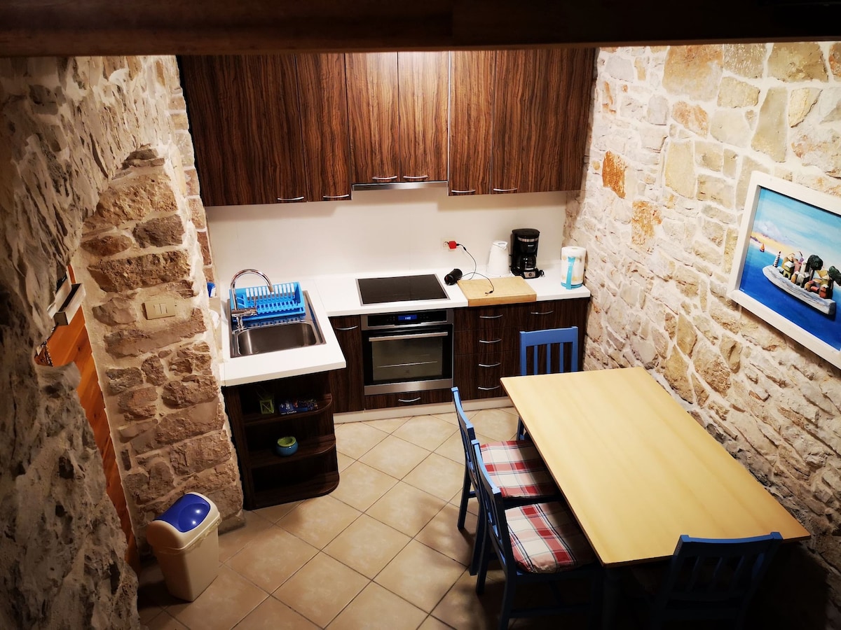 Objekat se nalazi na samoj obali u prelijepoj tirkiznoj i dinamičnoj uvali Kosirina. Pruža privatnost,okružena zelenilom i cvećem u hladu vekovnog maslinovog drveta. Sastoji se od dnevnog boravka, kuhinje,sobe i kupatila. U sobi su dva francuska kreveta (galerija). Dnevni boravak je zastakljen mobilnim zidovima i gleda na more i ceo zaliv. Terasa je natkrivena, a gosti imaju 2 ležaljke, 2 ljuljačke, lešinar(daska za veslanje), roštilj, solarni vanjski tuš...