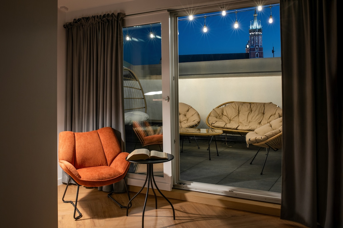 A luxurious stay awaits you in this exclusive and cozy penthouse apartment in the perfect location. Discover Krakow from the best point of location or relax with Netflix and enjoy the view! From here you can quickly reach all the sights, bars, restaurants, taxi/tram, ATM, Old Town, stores etc.... in a few minutes! In the apartment you will find a coffee maker, a washing machine with dryer, 2 bathrooms, 3 bedrooms, as well as a couch, Netflix, WiFi etc...