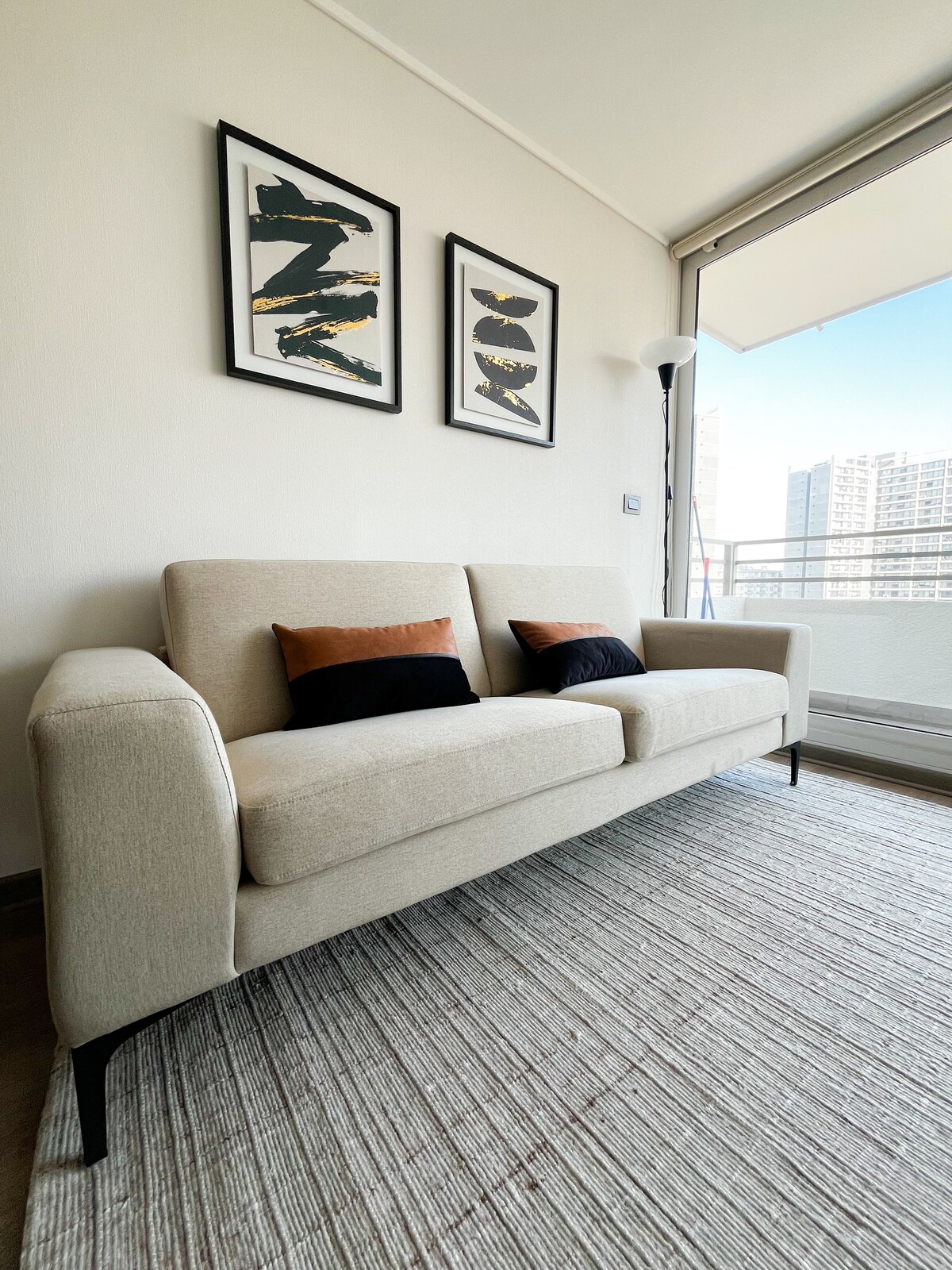 Moderni depto. sa prelijepim pogledom na planinu Nalazi se u centralnom i mirnom sektoru, 500 metara od metroa Bellavista, 700 metara od tržnog centra Plaza Vespucio, 800 metara od Clínica Dávila, 20 minuta od aerodroma, 10 minuta od stadiona Bicentenario i 7 minuta od monumentalnog stadiona. 1 spavaća soba + kauč u dnevnom boravku Opremljena kuhinja Privatna kupaonica Balkon s pogledom na planinski lanac Wi-Fi i TV sa aplikacijama Potpuno opremljen Moderan, udoban i minimalistički Bazen, teretana, kinčo, zajednički rad i prostorija za događaje