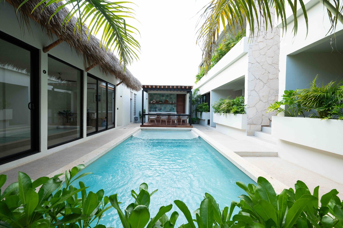 La habitación estándar está en planta baja, ofrece un espacio cómodo, fresco y tranquilo, ideal para descansar o trabajar remoto. Su diseño contemporáneo y tropical, crea una atmósfera relajante perfecta para una estancia agradable. Cuenta con cama queen size, A/C, ventilador, TV, WiFi, baño privado, frigobar y cafetera Nespresso. Como huésped podrás disfrutar de las áreas comunes como la alberca, camastros, mesas, cocina equipada, estacionamiento y circuito de vigilancia.