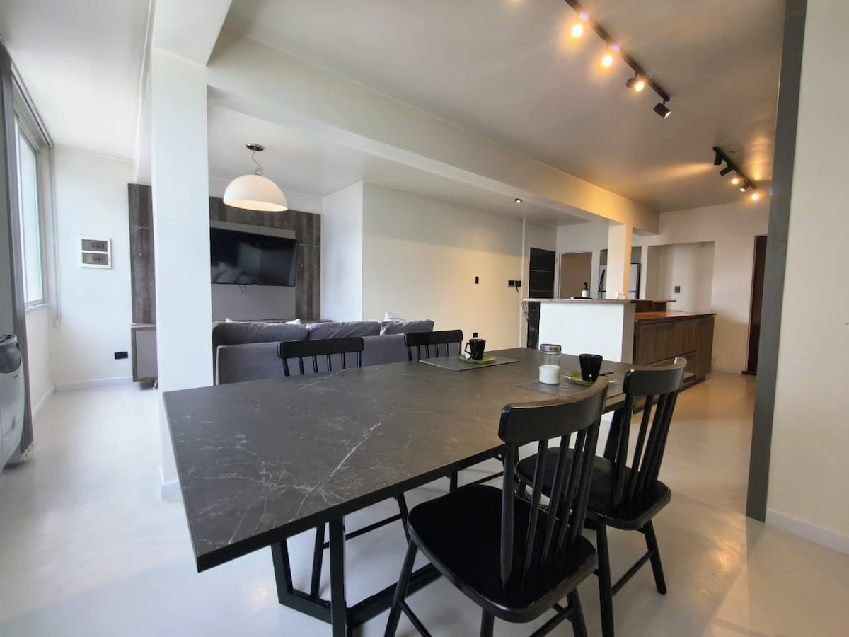 Jedinstven i ekskluzivan penthaus prikladan za porodice sa najboljim pogledom na more i grad u Puerto Madrin!!! Veliki stan od 120 m2 sa prozorima sa pogledom na more širine 8 m i balkonom za uživanje. Samo kratka šetnja do centra grada, lokalnih prodavnica i najboljih restorana. Gosti iz cijelog svijeta su dobrodošli u naš smještaj da uživaju u ovom mirnom gradu i njegovom okruženju, pa čak i da mogu da posmatraju kitove sa balkona!