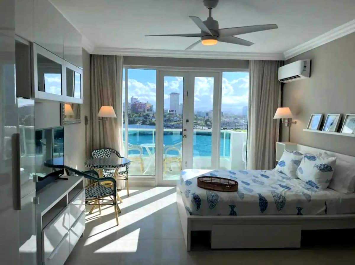 Elegant studio with balcony and lagoon views