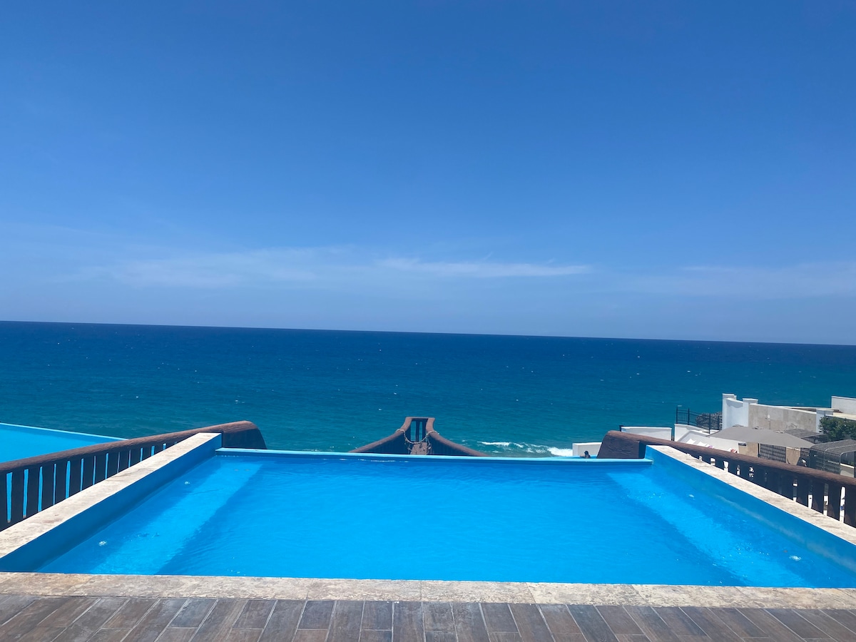 Escape to Paradise: Luxury Coastal Manor in Puerto Plata Dobro došli u smještaj iz snova! Ovaj zadivljujući dvorac od 5 BR, 4 pune ba, 2 i po baa nudi savršen spoj luksuza, udobnosti i praktičnosti za nezaboravan odmor. Uživajte u prelijepim pogledima (4 spavaće sobe imaju sopstveni balkon/unutrašnje dvorište), oazi na krovu (3 viseće ležaljke i roštilj na propan), prostranoj udobnosti (5 elegantnih smještaja za privatnost i otvorene stambene prostore za okupljanje) i praktičnosti neobaveznog vozila za istraživanje područja (40 $/dan)!