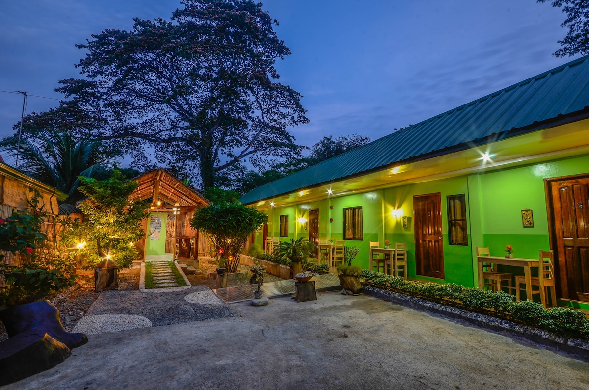 Privatne brvnare za goste nalaze se unutar organske farme od 7,5 hektara. Uživajte u bukoličnom pejzažu i istražite naša ostrva sa ove idealne lokacije. Nalazimo se na 25 minuta od aerodroma, i 5 minuta od mesta za obilazak ostrva Honda Bej. Gostima pružamo autentično iskustvo od polja do stola u Palavanu, a ako želite, možete da pomognete da nabavite sveže voće i povrće za obrok ili užinu. Radujemo se što ćemo vas ugostiti u našem tropskom raju!