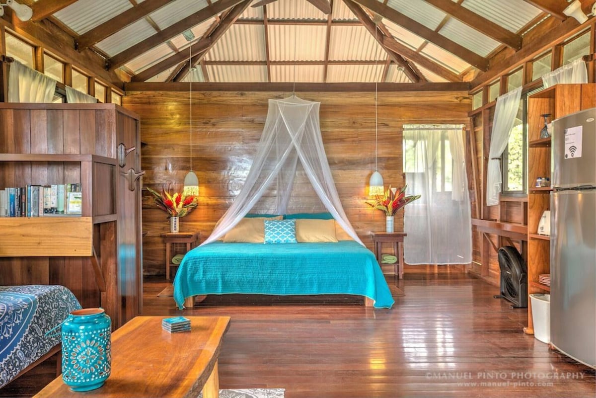 Opustite se na ovom jedinstvenom i mirnom odmoru usred karipske džungle i samo 5 minuta vožnje od plaže Cocles. Nudimo zaseban bungalov odakle možete da se opustite sa veličanstvenim pogledom na džunglu i njene divlje životinje. Oni će imati mogućnost da vide tukane, velike zelene limpete, oropendole, lenjivce itd. VAŽNO: pročitajte druge aspekte koje treba napomenuti.