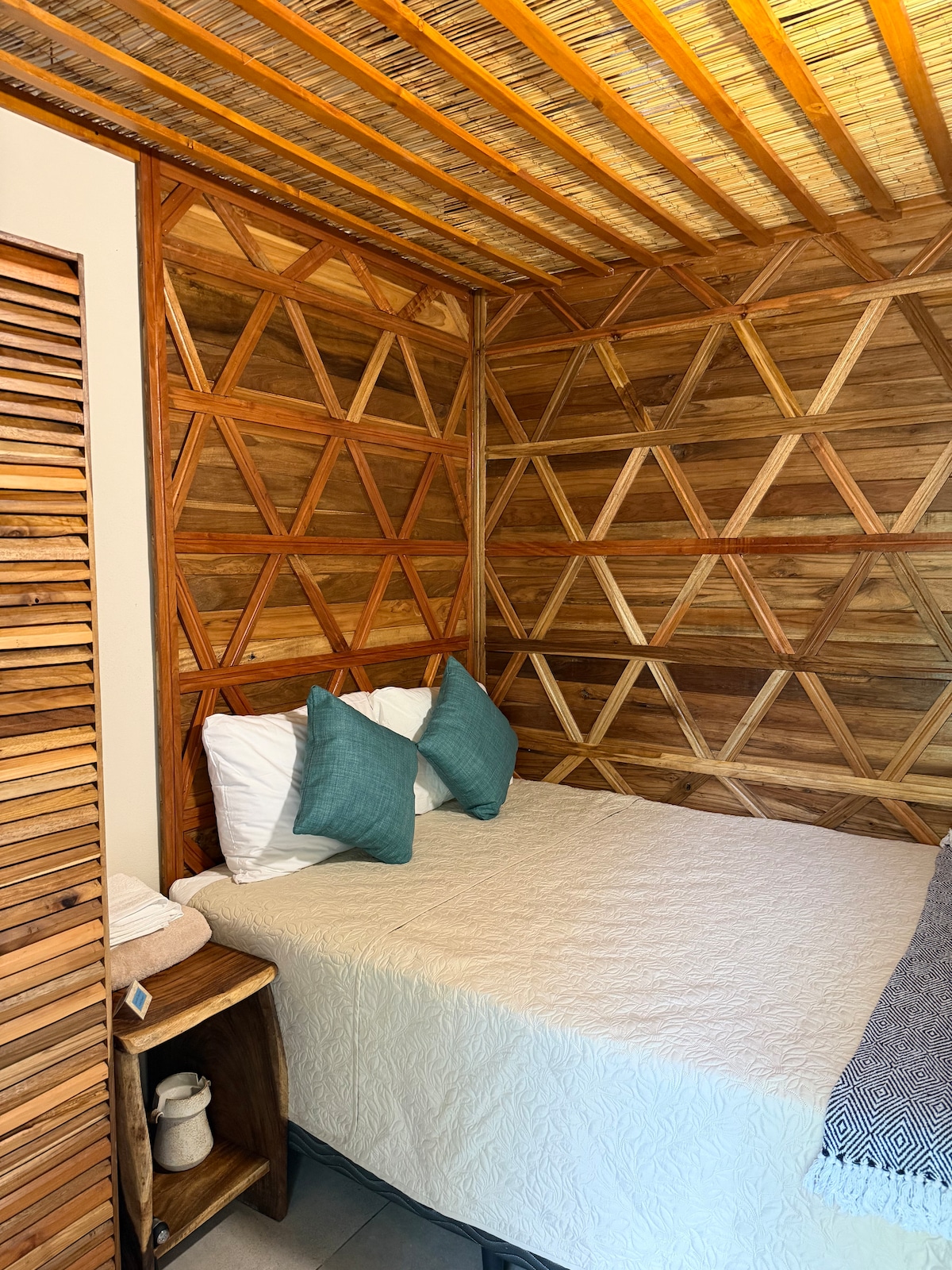 Garden-Level Queen Room in a Boutique Villa | Breakfast Included This private garden-level room WITH A SHARED BATHROOM WITH 1 OTHER ROOM features a queen-size bed and is ideal for two guests. It is one of ten rooms within a shared boutique retreat villa. Enjoy a private entrance from the garden and peaceful garden views. The room shares a well-maintained bathroom with just one other guest. Daily breakfast is included. 100meters to Cocles Beach