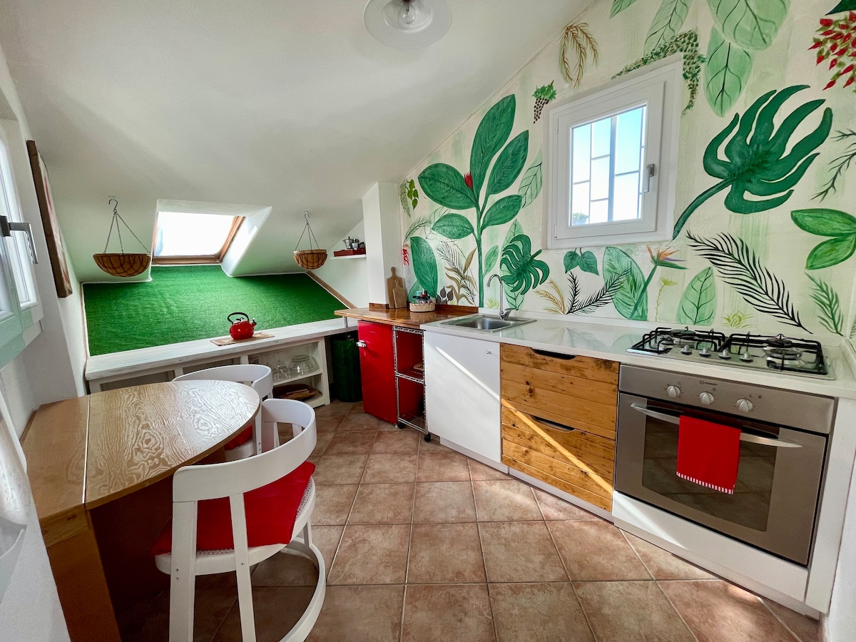 La casa è composta da un giardino, un'enorme terrazza, all' interno un elegante open space climatizzato composto da cucina con penisola godendoti la vista sul mare, spazioso salotto con divano che all'occorrenza si trasforma in un comodo letto con altri 2 posti, una stanza da letto climatizzata, una cameretta con letto a castello per bambini o amici, un bagno a due servizi fornito di biancheria. Sono ammessi volentieri animali. Con questo alloggio in centro, la tua famiglia sarà vicina a tutto.