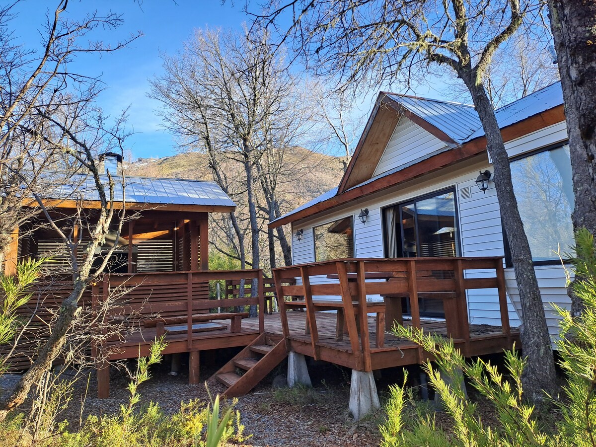 Samo brvnara uronjena u pola hektara (5.000 m2) privatne autohtone šume sa minisenderosom, BAZENOM (ljeto) i igrama ISKLJUČIVO za goste. WI-FI Fiber/ 2 PAMETNA televizora(HD c Pack DISNEY+/ESPN ITD.)/DirectTV/Pitka voda/Gas/Drva za ogrev/Peškiri/Čaršavi/Mašina za pranje veša Kapacitet p/ 4 osobe. 1D bračni krevet i 1D. sa 2 kreveta od 1 mjesta.; trpezarija-kuhinja (potpuno opremljena), šporet na drva, 1 kupatilo, roštilj sa roštiljem. U blizini centra Los Lleuques i 25 km od Nevados de Chillán