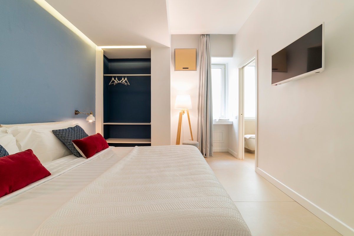 Mimì è una camera che può ospitare fino a 3 persone. Dispone di un letto matrimoniale e di un letto singolo a scomparsa. È dotata di bagno privato con doccia e asciugacapelli, balconcino privato vista mare, TV, aria condizionata, ventilatore a soffitto, e Wi-Fi gratuito.
