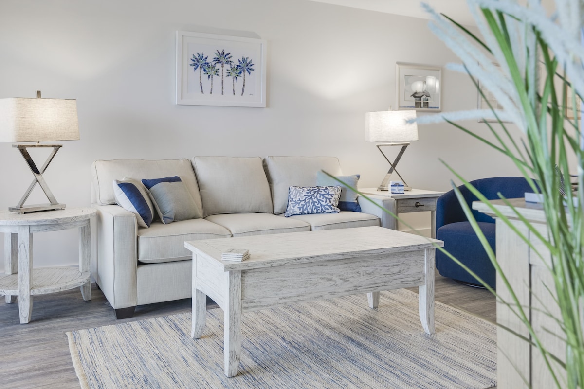 We are a Superhost for a reason! Sanibel Siesta looks amazing! Immaculate beachfront, 2BR, 2BA w/garage, nicely updated beachy unit at sand's edge. Cooks kitchen. Amazing views of the Gulf w/5 star ratings! 3-day min. New hurricane windows, nicely furnished with ELEVATOR IN BUILDING! Discount for weekly/mo. rentals. BR 1:King bed ensuite, smart TV. BR 2: 2 tw. beds, smart TV. Qn. sofa bed in LR. Pool, golf course, bikes, laundry on site. No food or condiments stored in unit. May allow sm. dog.