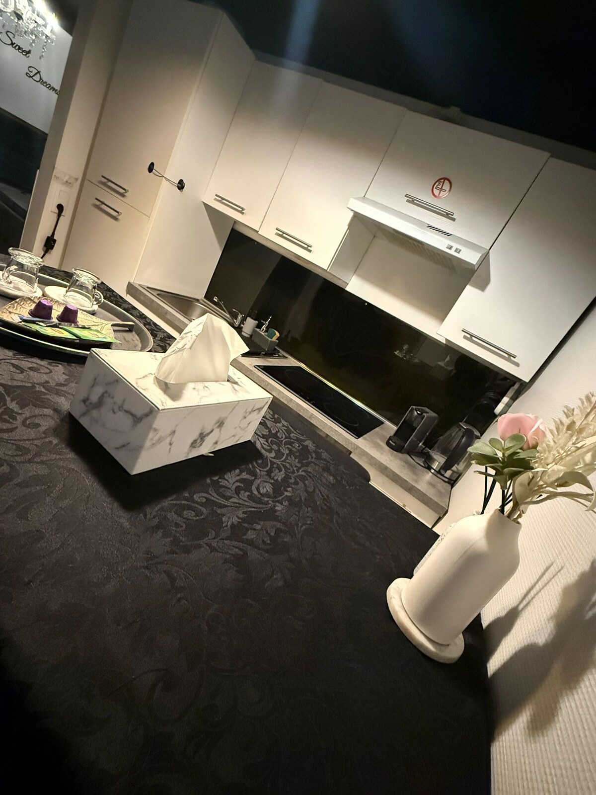 Lehne Dich zurück und entspanne Dich in dieser ruhigen und großen Wohnung. Auf 80 m²+ Balkon stehen Dir 2 Schlafzimmer mit einem Kingsize und einem Queensize Bett zur Verfügung: KEINE UNGEMÜTLICHE SCHLAFCOUCH ! Ein Esszimmer , ein Wohnzimmer , eine separate Küche und ein großes Bad mit begehbare Dusche sind auch vorhanden. Die Küche ist voll ausgestattet u.a. mit Senseo Kaffeemaschine und Kühlschrank/Gefrierfach. Ein Parkplatz fürs Auto und eine Garage für Motorräder sind auch vorhanden.