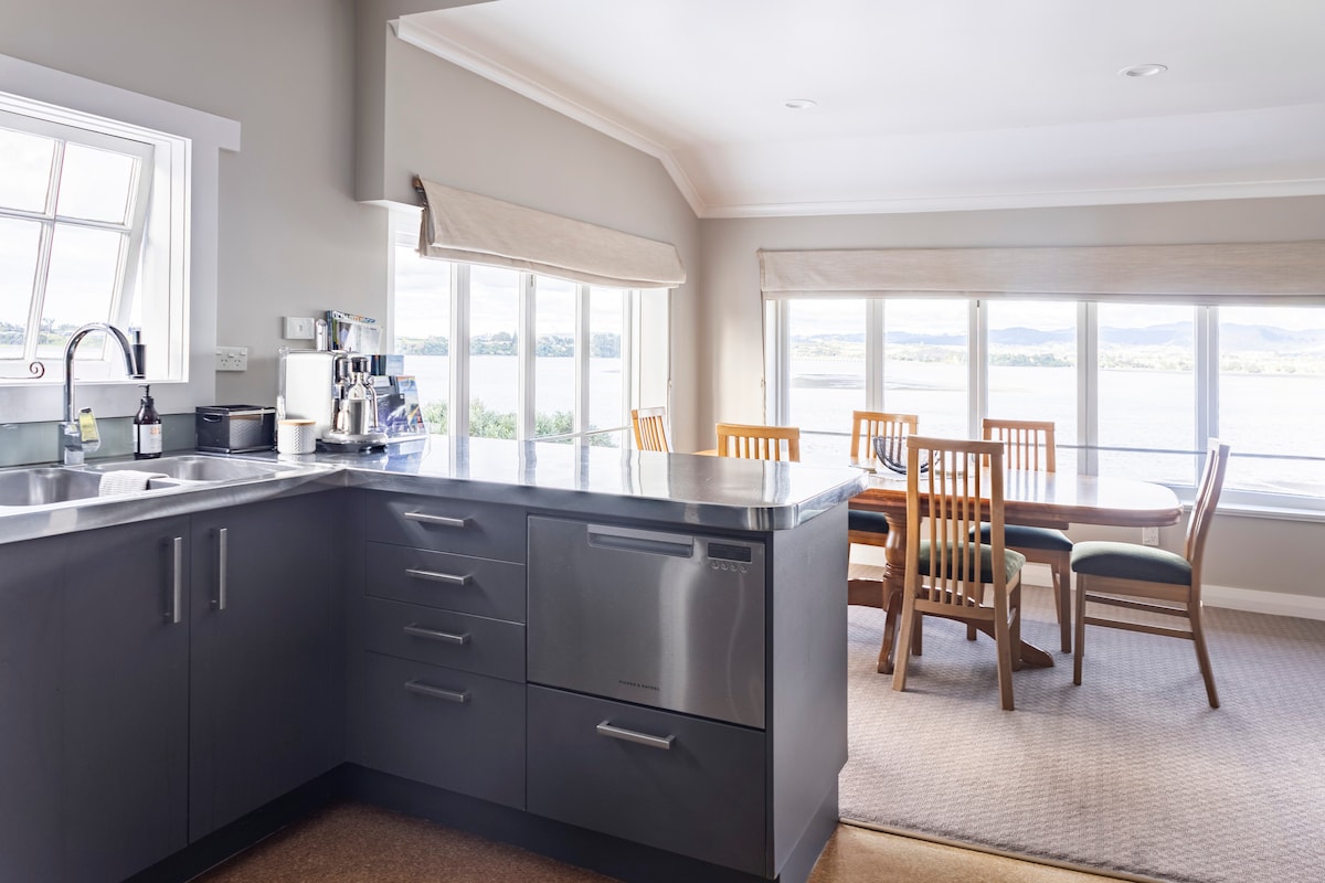 Escape to luxury, centrally located with captivating harbour views 🌅 📍Walk » Main Shopping Strip 📍Walk » Wharepai-Domain 📍Walk » University of Waikato (Tauranga Campus) 📍8 min » Tauranga Hospital 📍10 min » Tauranga Airport 📍10 min » Mt Maunganui Beach Immerse yourself in a perfect blend of comfort and convenience in the heart of Tauranga! ✅ 180 degree harbour views ✅ 311 Mbps WIFI ✅ Tea & Coffee ✅ AC/Heating Add to your Wishlist by clicking the ♥️ in the upper-right corner