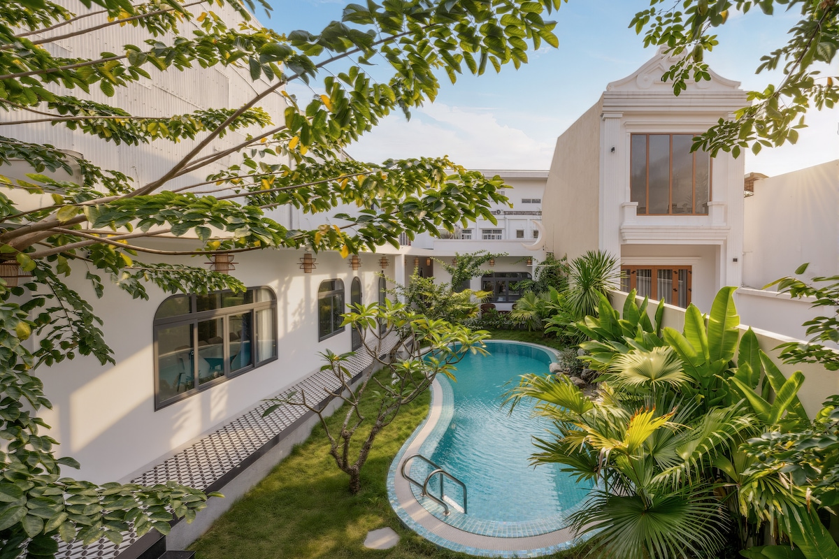 🎁 Novoizgrađena vila udaljena samo 3 minuta hoda od plaže Cua Dai i rijeke Tu Bon, koja nudi rijedak spoj privatnosti, velnesa i šarma na obali. Uživajte u privatnom bazenu, jogi na plaži i pješačkom pristupu lokalnim restoranima i spa centrima. Sa 3 mirne spavaće sobe (2 bračna kreveta + 2 kreveta za jednu osobu), udobno ugošćava 6 odraslih osoba + 2 djece (mlađe od 6 godina) — savršeno za porodice koje traže prostor, opuštanje i značajnu povezanost u profinjenom, mirnom okruženju.