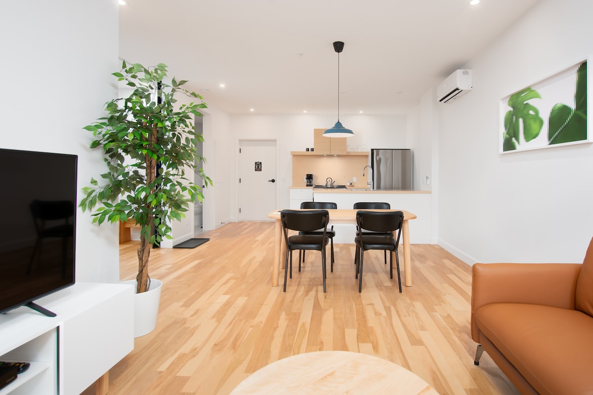 Pet minuta od starog Kvebeka i na dva minuta od železničke stanice, novi stan sa: - 1 bračni krevet (180x200) - 1 bračni krevet (širine 150-179 cm) - 1 igraonica za bebe Vrlo praktično i idealno za porodice sa malom decom (dostupna je oprema za bebe/decu): - Neograničen brz Wi-Fi - kancelarijski prostor (spavaća soba) - 2 pametna televizora - potpuno opremljena kuhinja - kupatilo sa mašinom za pranje i sušenje veša U zgradi : - teretana - bazen* - Roštilj, kamin i trpezarija na krovu Mnoga parking mesta, restorani, kafići i aktivnosti u blizini