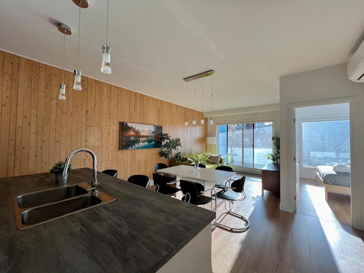 Izuzetno moderan stan za 4 osobe u srcu Kvebeka. Idealan za dva para, ovaj objekat sa 2 spavaće sobe / 2 kupatila nudi pristup bazenu na krovu (u sezoni), terasi, spoljašnjem kaminu, roštiljima, teretani u kojoj se, između ostalog, nalaze traka za trčanje i eliptični trenažer, kao i besplatan parking. Samo nekoliko minuta hoda od Starog Kvebeka i živahne ulice Sen Žozef. Uživajte u udobnosti, stilu i nenadmašnoj lokaciji za nezaboravno iskustvo u regionu Kapitale-Nasjonal.