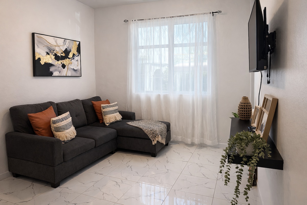 Udoban stan koji se nalazi u fantastičnom delu grada. Stan se nalazi u zadnjem dvorištu rezidencije, zajedno sa još dva stana. Potpuno opremljen; uključuje mašinu za pranje veša, TV, internet i klima-uređaj. IMAMO SOLARNU ENERGIJU I BATERIJE, TAKO DA NESTANCI STRUJE NE UTEČU NA NAS!! Prostor na krovu za uživanje gostiju. Blizu svega! Supermarket, bolnica, apoteka, plaža, bio zaliv, trajekt za Culebra/ Vieques i još mnogo toga... sve se nalazi u roku od nekoliko minuta (udaljenost vožnje)