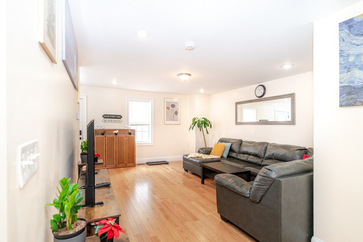 Savršen za porodice i grupe, ovaj čist, novouređeni smještaj na 3 nivoa ima 1 bračni krevet i 2 spavaće sobe pune veličine i kauč na razvlačenje u dnevnoj sobi 2,5 kupatila (uključujući pola kupatila na glavnom spratu) i pažljivo osmišljene detalje kao što su grickalice, kafa, vino, punjači, putni krevetac i brzi Wi-Fi. Nalazi se u autentičnoj bostonskoj četvrti ~20–30 minuta od centra grada automobilom ili javnim prevozom. Očekujte živahni lokalni karakter, jednostavan pristup javnom prevozu i normalne zvukove grada.