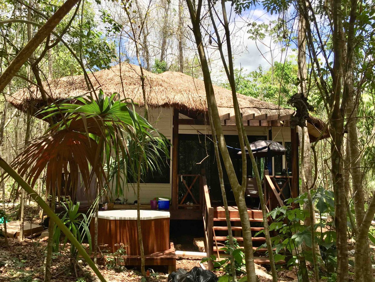 Odsjednite u sopstvenoj rustikalnoj oazi u pejzažu Majanske rivijere smještenom u prirodnim mangrovima Tuluma. One Bedroom Mini Suite second floor cabin unit in a jungle like setting in a gated area, but still located on the main road of Carrillo Hwy 307/Carretera Tulum, just 5-10 minutes from downtown w/panoramic views, 15 minutes away from Tulum 's turquoise beaches and 20 minutes from the Ruins! Ima brzi svjetlovodni internet. Mnogo prelepih cenota koje treba posetiti niz put!