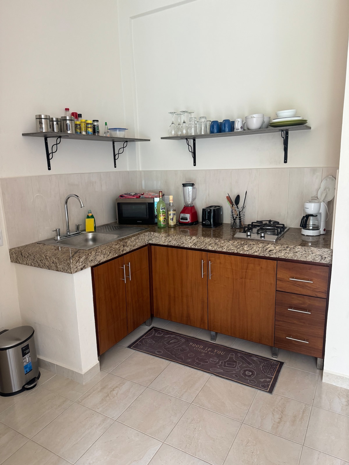 Enjoy a stylish stay in this central and convenient apartment. Just 5 minutes from shopping centers and supermarkets. We are close to the road that leads to Tulum, Playa del Carmen, and the Cenotes Route. The condo has a pool and 24/7 security. Only 15 minutes from the airport and 7 minutes from the Hotel Zone. ** Children under 6 years old are not allowed.