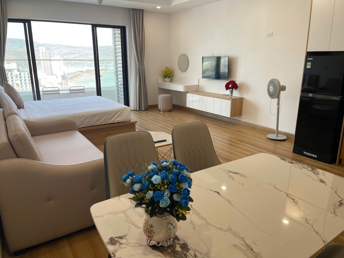Dobro došli u svoj elegantni smještaj uz more u srcu Kuy Nhona! Ovaj jedinstveno dizajnirani studio je savršen za samostalne putnike ili parove koji traže udobnost i praktičnost u TMS Quy Nhon - Hupasearest. 🛋️ Šta će vam se svidjeti: • Udoban bračni krevet s čistom posteljinom i mekim jastucima • Smart TV, brzi Wi-Fi savršen za rad ili zabavu • Potpuno opremljena čajna kuhinja sa frižiderom, kuvalom i osnovnim posuđem • Privatno kupatilo s toplom vodom i besplatnim toaletnim potrepštinama • Balkon s pogledom na more