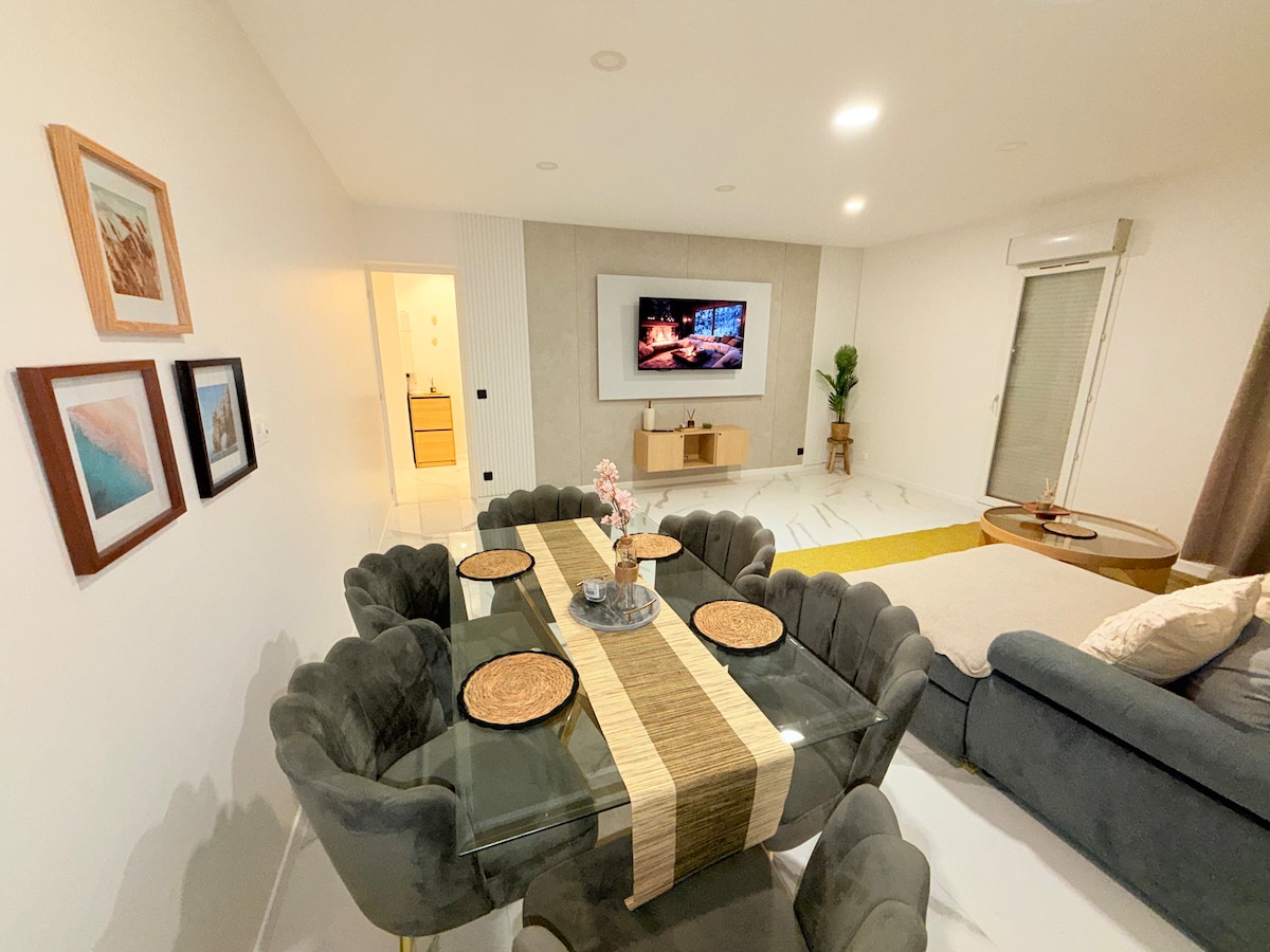 Brand-new apartment with balcony, just 15 min from Paris and La Défense. Perfect base to explore the Champs-Élysées, Montmartre and the Louvre, while staying in a lively district. Steps from Qwartz mall (160 shops & restaurants), Mégarama cinema and the vast Chanteraines Park. Quick access to Stade de France and public transport. Fully equipped kitchen, fibre Wi-Fi, cosy bedroom and bright lounge for a stylish and comfortable stay.