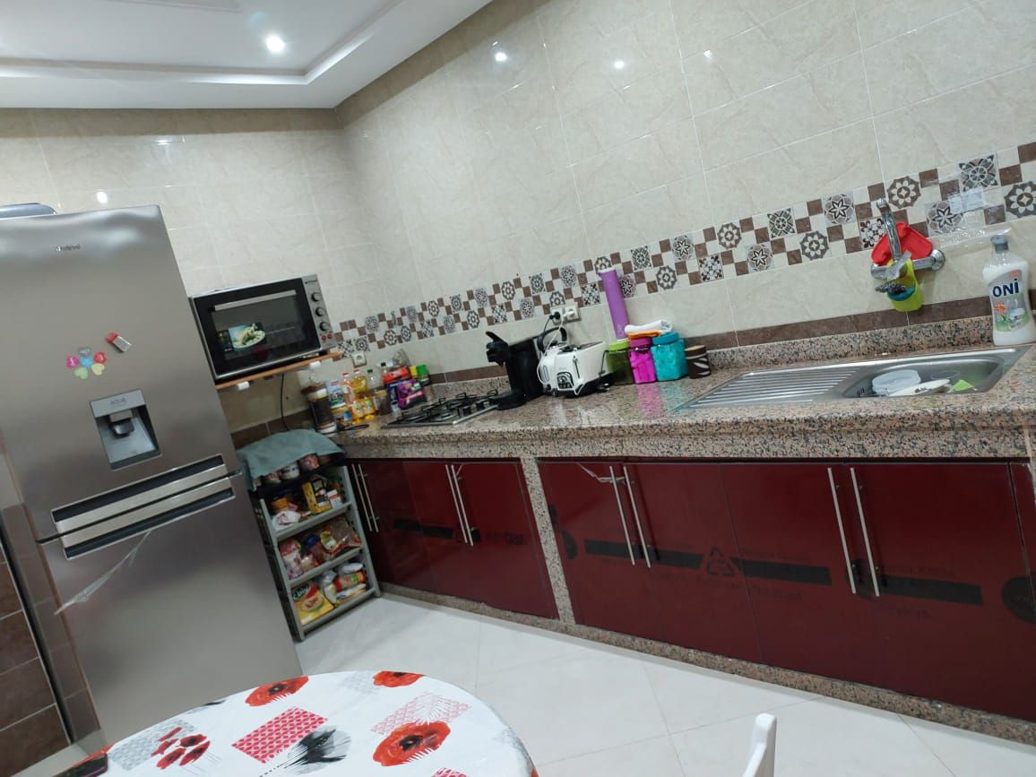Très belle villa combinant luxe et confort. 3 chambres, 2 salles de bains, 4 salons. Cette belle villa est à Mehdia. Meublé. Confort et tradition avec trois beau salon marocain, cuisine équipée. Four micro-ondes, machine a laver. Proche de toutes commodités, hammam spa, épicerie, transport, restaurant, Club nautique, location de jet-ski, a cinq minutes de la plage de Mehdia. et a 10 min de la grande ville de kinetra.