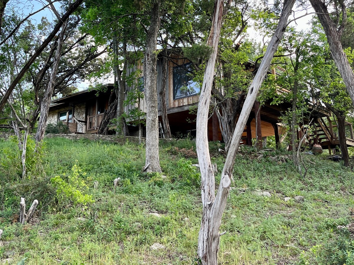 Sedeći visoko na vrhu krečnjačkog litice s pogledom na Brušij Krik, Hideaway na brdu pruža vam priliku da doživite deo istorije Teksasa dok uživate u modernoj udobnosti doma. Domaće biljke, drveće, grmlje i cveće ovde napreduju generacijama. Bioraznolikost na imanju privlači ptice, leptire i druga stvorenja koja se ne nalaze u tipičnim delovima grada. Nadamo se da ćete biti oduševljeni svom istorijom i ljepotom koju ovaj jedinstveni objekat nudi.