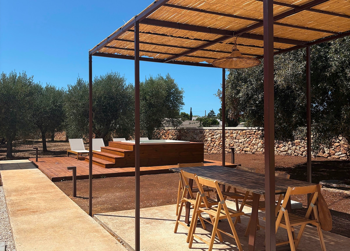 Ruralna kuća, pajara, upravo renovirana na selu, unutar maslinika od 10.000 mq sa panoramom koja oduzima dah. Lijepo namješten,potpuno opremljen klima-uređajem, velikim vanjskim privatnim bazenom sa hidromasažom (3,5 x 11 m) i kuhinjskim prostorom sa dodacima. Bazen je nezavisan, greje se danju i noću ( 24-28 stepeni) i samo za kuću, samo za kuću, jedini objekat koji se nalazi u vili. Wi-Fi je veoma dobar i za rad u kući. Samo 5 km od poznatog turističkog mora