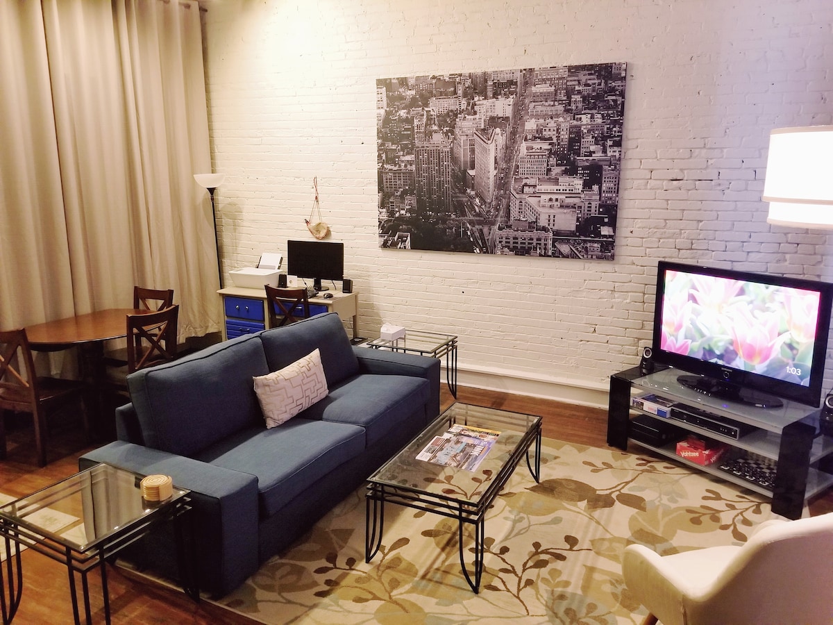 Odsjednite u istorijskoj aveniji Moris u ovom neodoljivom, dobro opskrbljenom potkrovlju, savršenom za parove, putnike koji putuju sami ili poslovne goste. Uživajte u luksuznom bračnom krevetu Stearns & Foster, udobnoj udobnosti i istinskom osjećaju daleko od kuće. Prošetajte do UAB-a, vrhunskih restorana, barova i zabave u centru grada. Parking se nalazi odmah iza zgrade - rijetka pogodnost Morris Ave! Napomena: vozovi voze u blizini, tako da lagani spavači treba da budu na oprezu. Doživite šarm Birmingema iz ovog privlačnog potkrovlja!