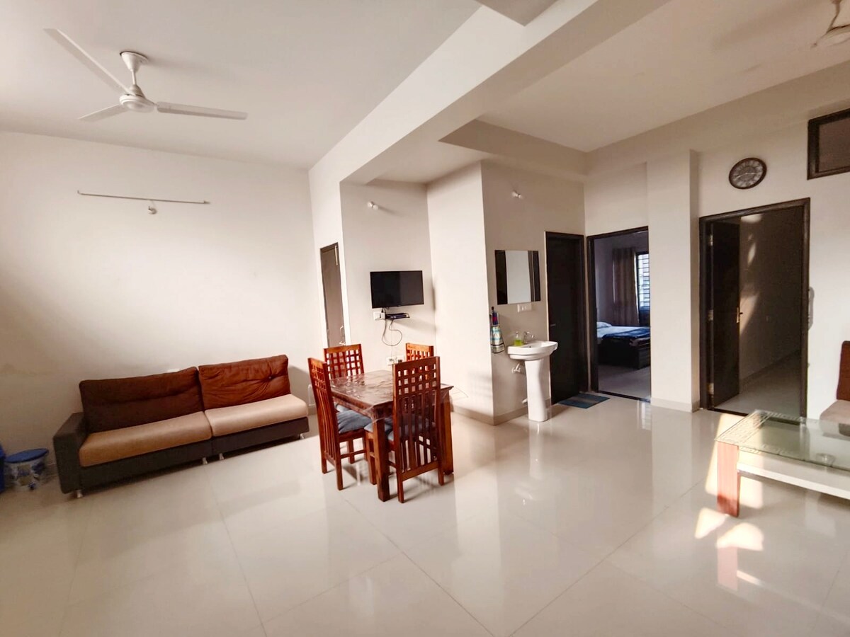 Dobro došli u Sobera Stays, udoban i udoban stan samo 2 km od stanice Rani Kamlapati — savršen za parove,porodice ili putnike koji putuju sami. Uživajte u mirnom krevetu, udobnom kauču, potpuno opremljenoj kuhinji i brzom Wi-Fi mreži — sve u mirnom prostoru u srcu Bopala. Izađite napolje i istražite kafiće, pijace, jezera i gradski život. Vratite se u svoje mirno utočište sa besplatnim parkingom, pažljivo osmišljenim dekorom i svim udobnostima doma.