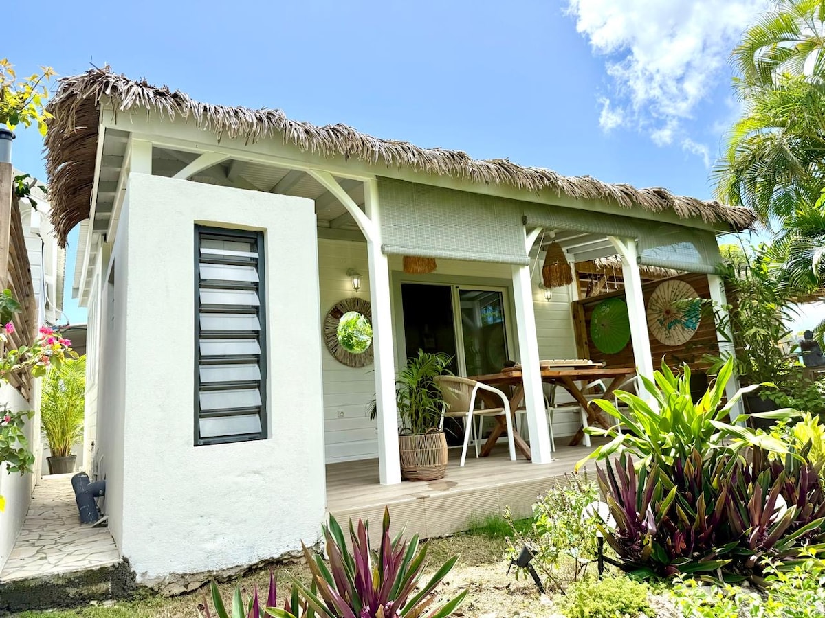 Jolie petite maison au cœur d'un jardin tropical équipée d'une chambre avec literie de qualité hôtellerie. La terrasse couverte vous permettra de profiter des chaudes soirées, la cuisine est équipée du nécessaire à votre confort la salle de bain avec douche à l'italienne vous permettra un confort idéal le logement est à proximité du centre de Saint-François et de la plage. Alex cuisinier de profession vous propose une table d'hôte le premier petit-déjeuner vous sera offert par vos hôtes.