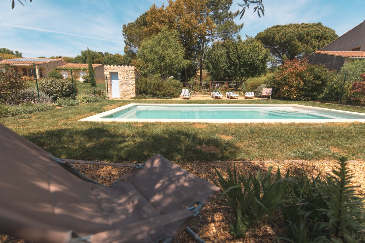Vous aimez le calme et la nature, alors vous êtes au bon endroit, en effet la route s’achève au gîte. Au-delà, les chemins serpentent dans la pinède et les collines parmi les capitelles. Vous pourrez les découvrir à pied, en VTT avec ou sans pique-nique. Le gîte se situe dans un domaine viticole que vous pourrez visiter. Ancienne écurie du domaine, ce gîte indépendant, climatisé, bénéficie d’une terrasse avec pergola et nous mettons à votre disposition, notre piscine (7.2 m x 3.7m).