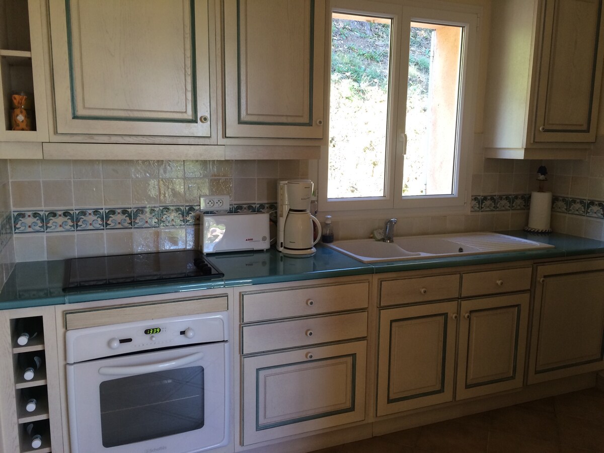 Mala nedavna kuća od 38 m2, nezavisna, nalazi se 10 minuta hoda od plaže Grimaud okrenuta prema Sen Tropeu. Želite da idete brodom da prošetate lepim ulicama Sent Tropea ili Ste.Maxime, pravac Port Grimaud 20 minuta hoda. Čekaju vas veoma lepe šetnje, prelepe lokacije koje treba posetiti, planinarenje i razgledanje. Ima sve neophodne sadržaje za prijatan boravak.
