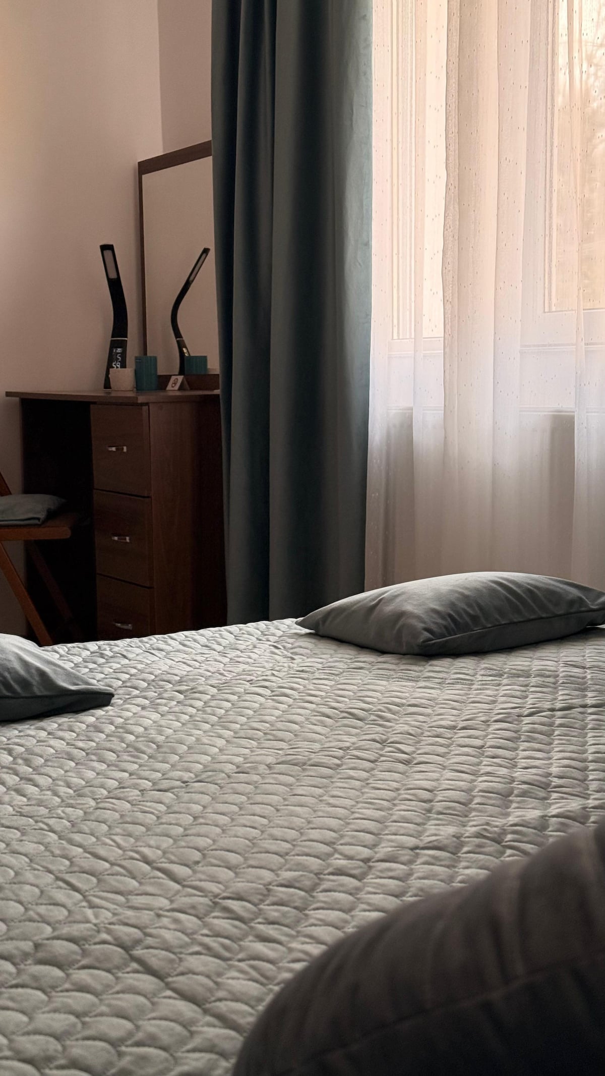 Stan se nalazi u centralnom, ali veoma mirnom području. Ima prostranu spavaću sobu sa bračnim krevetom i prostranu garderobu, svetao salon, potpuno opremljeno kupatilo i kupatilo u kuhinji i prostor za odlaganje u kojem se nalazi i mašina za pranje veša. - Besplatan besplatan neograničen brzi Wi-Fi internet; - Gvožđe i gvozdena daska; - Fen za kosu ; - Mašina za vodu i vodu za vodu ; - Grijanje, klima-uređaj i odlična usluga čišćenja; - Sveži peškiri i posteljina;Čekamo vas !