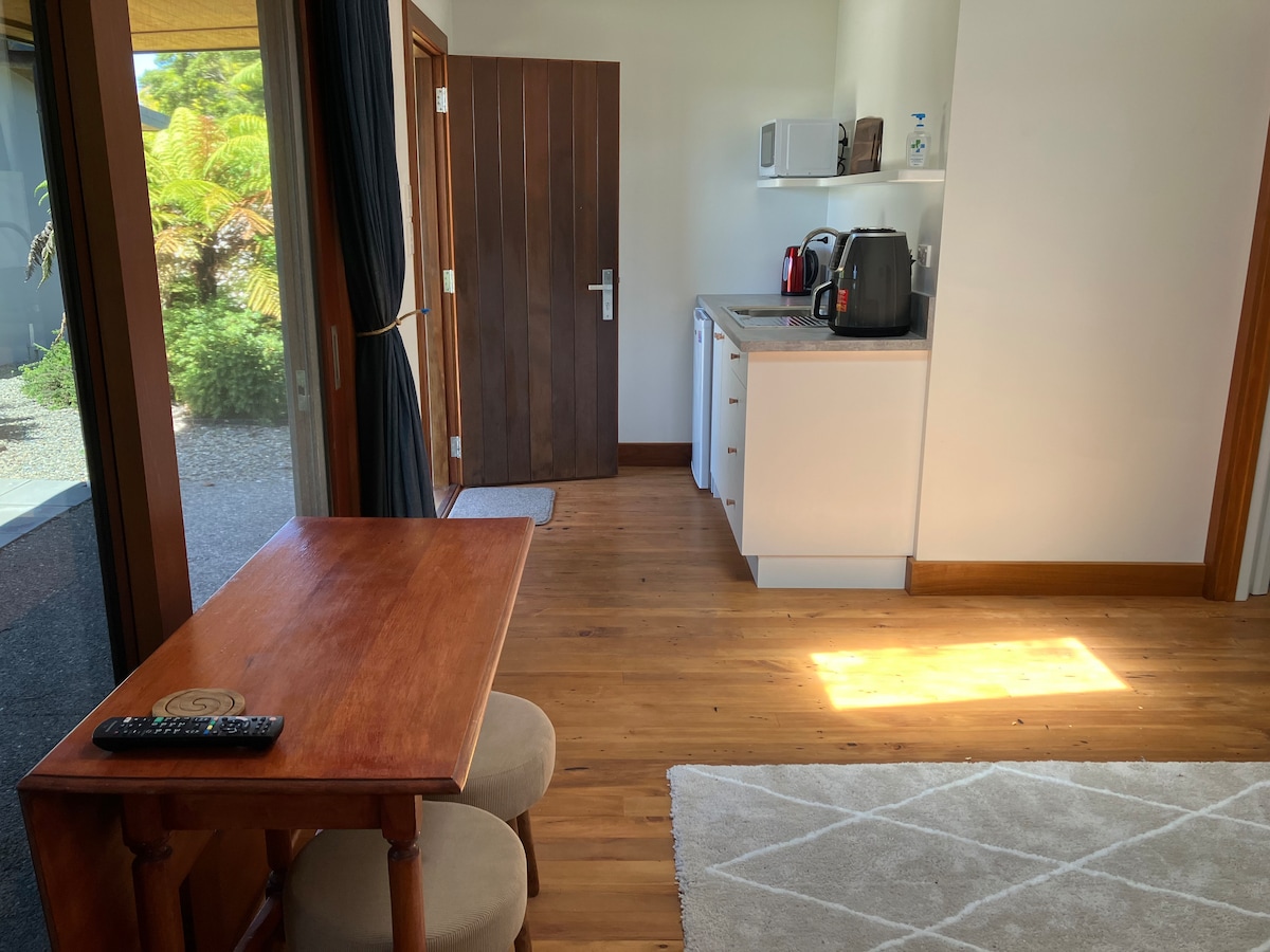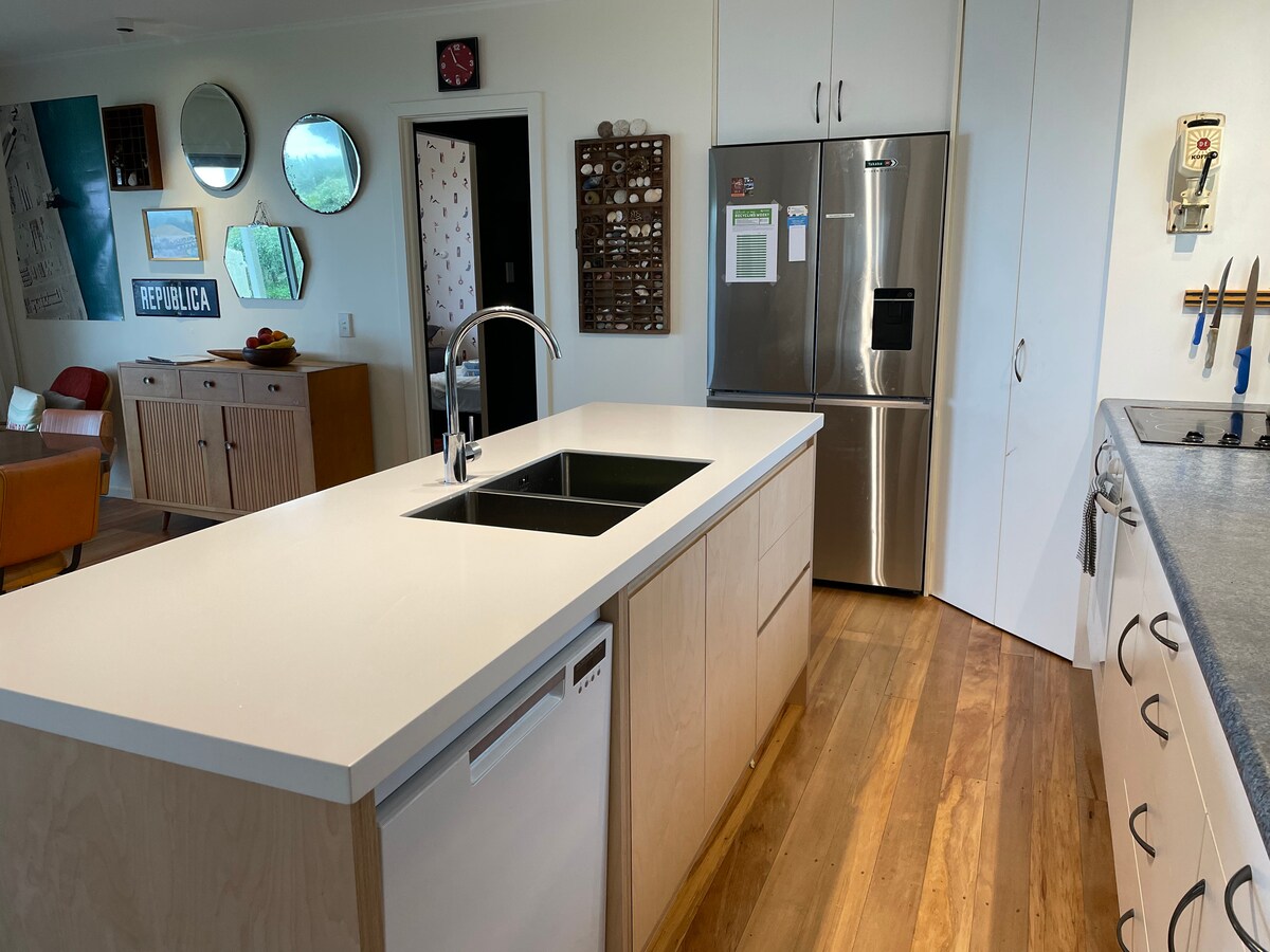 Dobro došli u svoje privatno utočište. Budite očarani nežnim kapljicama tekućeg potoka i zvukom pjev ptica. Posmatrajte domaće ptice sa prozora spavaće sobe ili palubu koja posjećuje autohtone drveće. Uživajte u vatri na otvorenom pod zvezdanim svetlom. Nevjerovatna tuš kabina visokog pritiska sa pogledom na drveće i reku. Roštilj na privatnoj palubi pored potoka Uživaćete u prirodnom utočištu i samo 3 minuta vožnje do Takake.