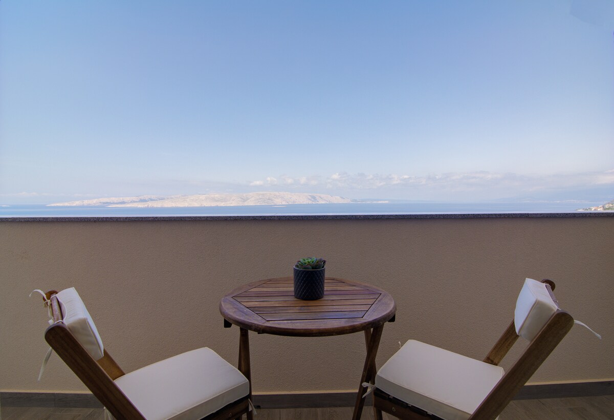 Apartments Visum will provide you with a panoramic view of the sea, the islands, the town of Senj with its fortress Nehaj and the mountainous surroundings of the city, in the atmosphere of the silence. On a glorious location with beautiful views, you will experience a sense of tranquility and primordial peace, and the marvelous sunsets in the sea and sky encounters will leave you breathless. Distance from the beach is 1 km, 1.5 km to the city center and 1 km to the fort Nehaj. Krk Airport 54 km