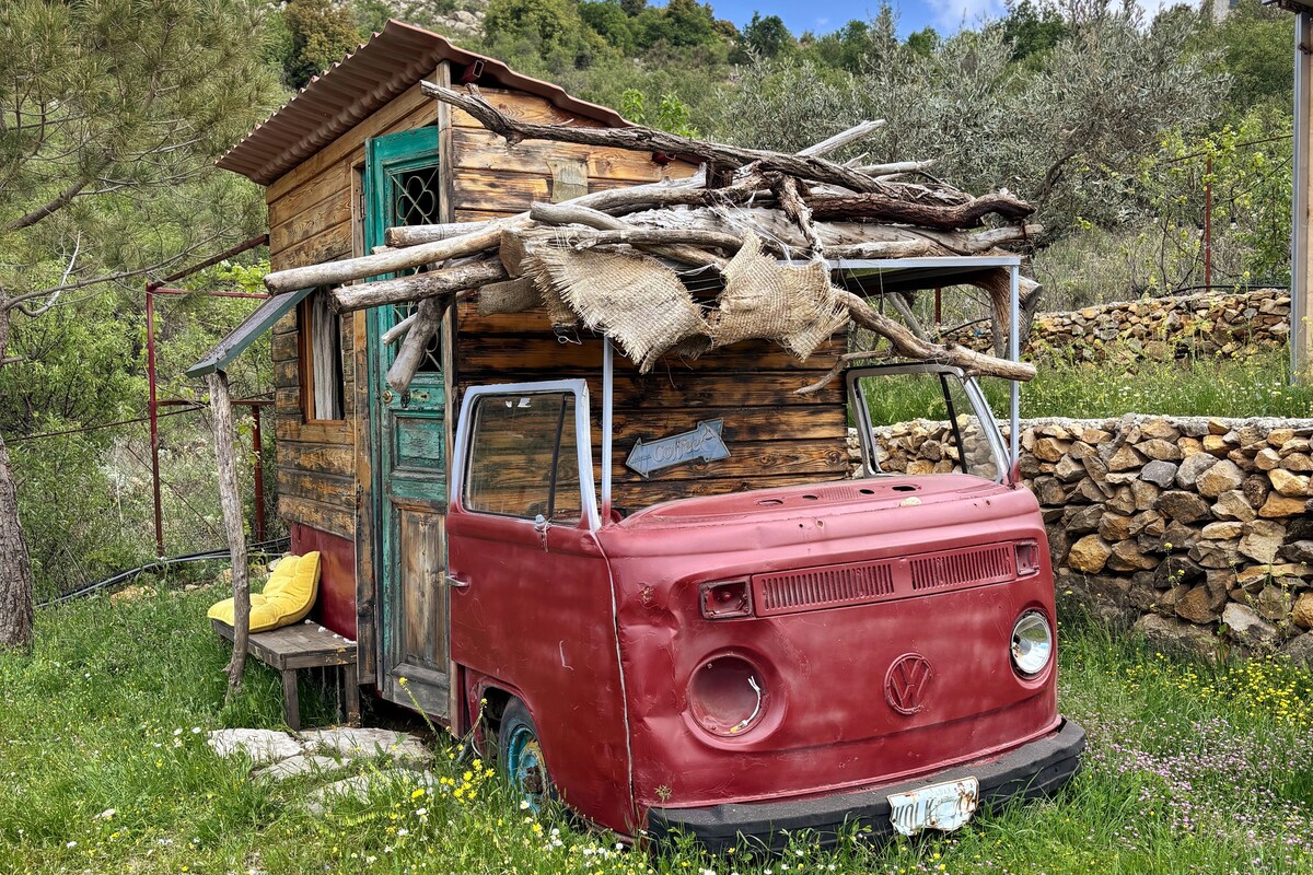 For a couple, a group of friends, or a single person seeking simplicity and tranquilly, our Vintage Van is the ideal small retreat. A cozy red van made just for two. The Vintage Van is your little escape, perfect for slow mornings, peaceful nights, and coffee with a view. Right nearby, you'll find our cute Beetle Library, an old car filled with books waiting to be explored. Fits 2 people Optional breakfast: $10/person Tents for extra guests: $30/fits 2 people By reservation only