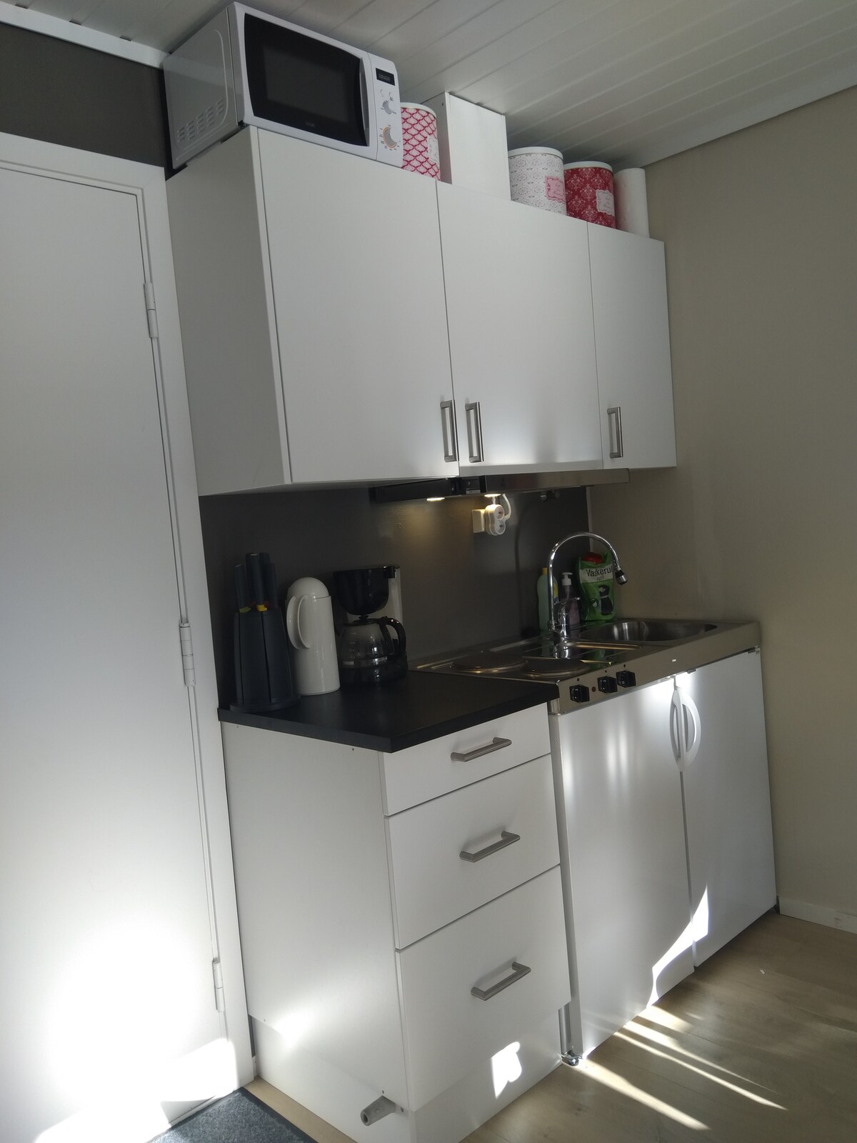 Hør fuglene synge i skogen utenfor mens du sitter i det store vinduet, drikker morgenkaffen og studerer romsdalsfjellene. Minihuset ligger sentralt, men usjenert, i utkanten av en skog i sentrum av Isfjorden. Spenn på deg skia utenfor døra og gå på noen av Romsdalens mest kjente fjell. Eller sitt i sofaen og se på Romsdalseggen du gikk tidligere på dagen. Minihuset har et lite og funksjonelt utrustet hybelkjøkken (kjøleskap og to kokeplater) som du kan lage deg enkle matretter på.