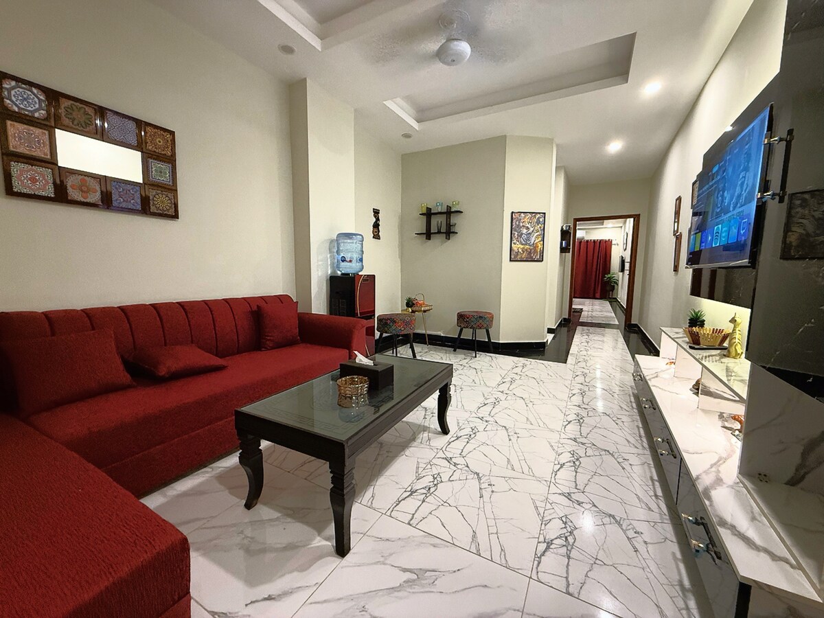 Otkrijte oličenje luksuza u ovom stanu u centru Ravalpindija! . Uživajte u potpuno opremljenoj kuhinji, prostranom dnevnom boravku i elegantnoj spavaćoj sobi dizajniranoj za opuštanje opremljenoj luksuznim sadržajima kao što se vidi na slikama. Izađite napolje i istražite živopisne lokalne atrakcije, kupovinu i restorane samo na pješačkim udaljenostima. Takođe obezbjeđujemo mogućnost odabira i ostavljanja sa aerodroma i u blizini mjesta, posebno za goste koji imaju problema sa nošenjem ogromnih torbi dok putuju na duži rok
