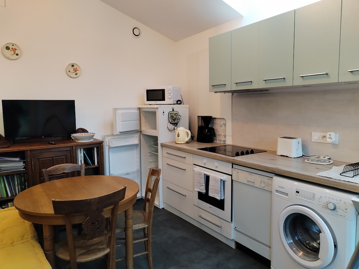 Nezavisni smještaj od 20 m2 u blizini hipercentra, klinika, stadiona/bazena Raymond Kopa, ESA, UCO i Espace Anjou. Mnoge prodavnice su udaljene 200 m (prodavnice, pekare, ugostitelji, mesar, cvjećar, banke, supermarket...). Idealno za parove ili putnike koji putuju sami. Pogodno za spavanje do 3 osobe (bračni krevet na međuspratu i dušek za jednu osobu na međuspratu). Nezavisni pristup je kroz baštensku kapiju.