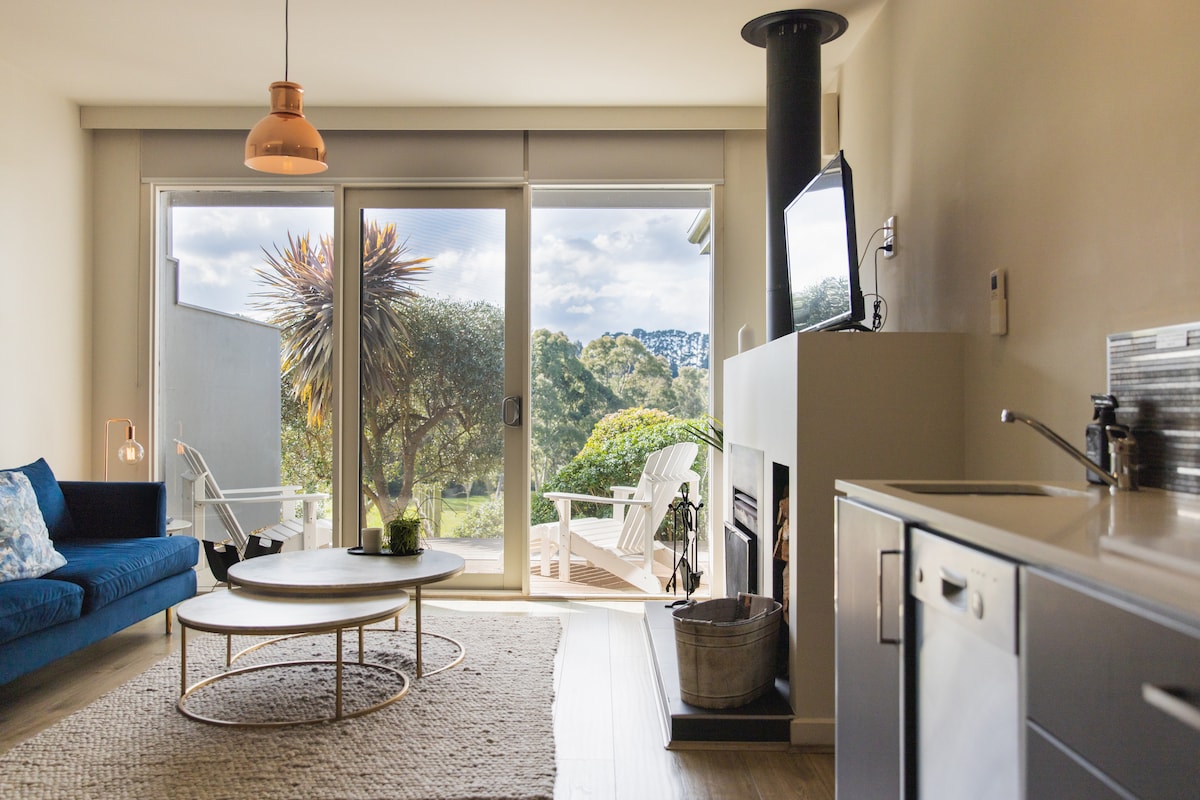 Opustite se i uživajte u ovom mirnom, privatnom i elegantnom prostoru. Uživajte u kaminu (BYO drvo), 15 minuta šetnje do plaže i brzom vožnjom do termalnih izvora. Bračni krevet (širine 180–220 cm), TV od 65 inča sa AirPlay zvučnim sistemom, tuš sa efektom kiše i odličnim pritiskom, kuhinja sa aparatom za kafu i mašinom za sudove, spoljni roštilj. Ako datumi nijesu dostupni, pogledajte naš drugi smještaj u blizini: https://www.airbnb.com/l/n0oL6D8z Napomena: prilaz nije isplivan i nekoliko baštenskih kreveta još uvijek treba napuniti – to neće uticati na vaš boravak.