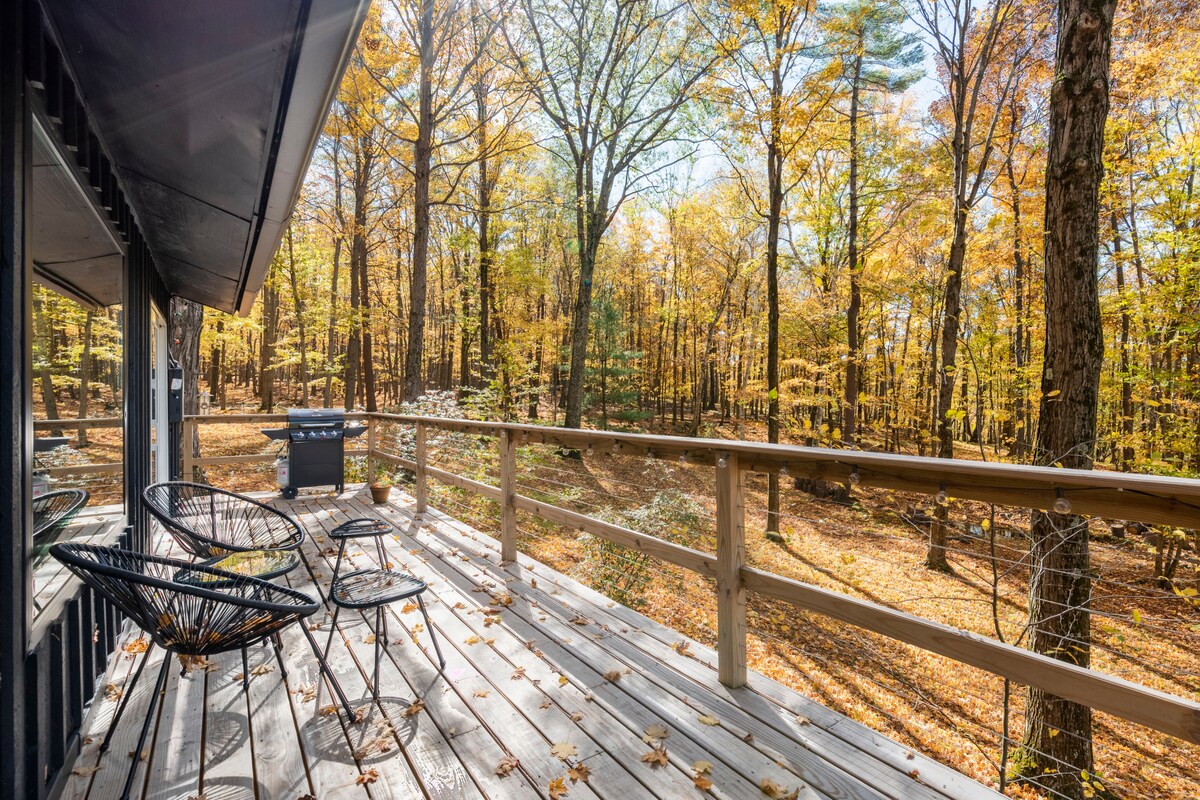 Udobna brvnara ušuškana u šumi, 2,5 sata sjeverno od Njujorka i 2,5 sata zapadno od Bostona - gdje se Ketskilsi susreću sa Berkširom. Ljeti je pješačenje, skijanje zimi, a potpuni mir i tišina tokom cijele godine. Ova cela brvnara je ručno restaurirana i jedva čekamo da podelimo prostor sa vama. Pratite nas na Instagramu na @ theupstatecabinda biste pratili naše avanture na sjeveru države i transformaciju brvnara.