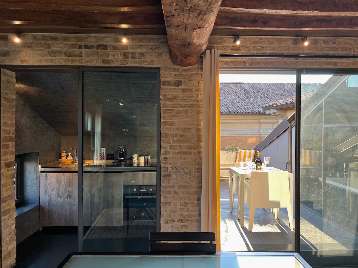 Potkrovlje/potkrovlje se nalazi u centru grada, u blizini istorijskog trga Garibaldi, srca Parme. Penthaus je dizajnirao poznati arhitekta, koji je ovaj prostor učinio jedinstvenim. Dnevni boravak sa velikim i svijetlim dnevnim boravkom gleda na krovove Parme sa ekskluzivnom terasom. Da biste upotpunili predivnu kuhinju po mjeri. Moderna glavna spavaća soba s ormarom i kupatilom s jacuzzijem za opuštanje nakon hladnog zimskog dana.